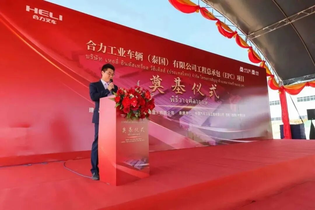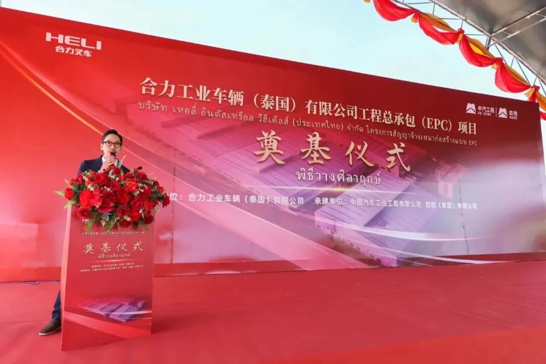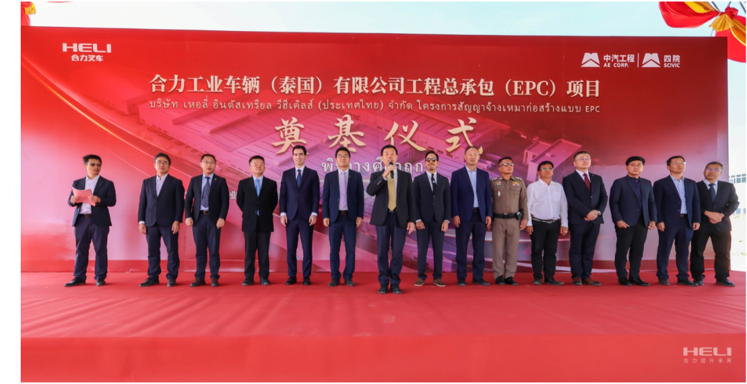 安徽叉车集团党委委员、副总经理、安徽一竞技股份有限公司副董事长薛白,安徽一竞技股份有限公司党委委员、副总经理陈先友,Siam Motors Group总裁Prakasit Phornprapha,中国汽车工业工程有限公司副总经理姚乐鹏,洛加纳工业园园区中国事业部总经理孙晓军、销售总监刘辉以及当地泰国当地政府代表等嘉宾出席项目奠基仪式,共同见证了这一激动人心的历史性时刻。随着薛白登台宣布:“一竞技工业车辆(泰国)有限公司工业车辆整机及锂电池组组装生产项目正式开工”,现场工程车辆齐声鸣笛,数台重型机械同步启动,标志着该项目正式进入实施建设阶段。