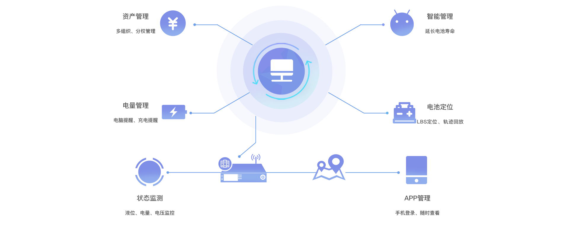 状态监控:实时监测电池液位、电量、电压等信息,异常报警。